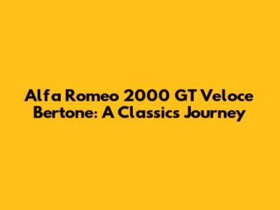 The Alfa Romeo 2000 GT Veloce Bertone: A Legacy of Beauty and Performance