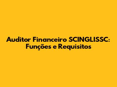 Auditor Financeiro SCINGLISSC: Funções E Requisitos