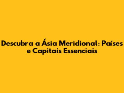 Lista de Países da Ásia Meridional e Suas Capitais