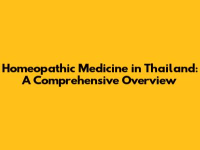 Homeopathic Medicine In Thailand: A Comprehensive Overview