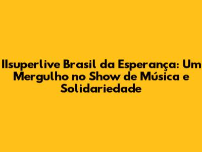 IIsuperlive Brasil Da Esperança: Um Show De Música E Solidariedade