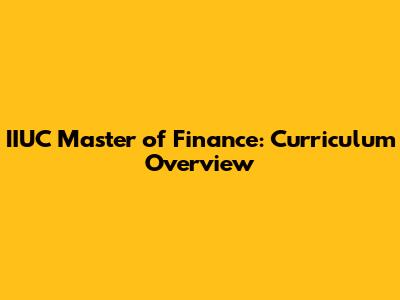 IIUC Master Of Finance: Curriculum Overview