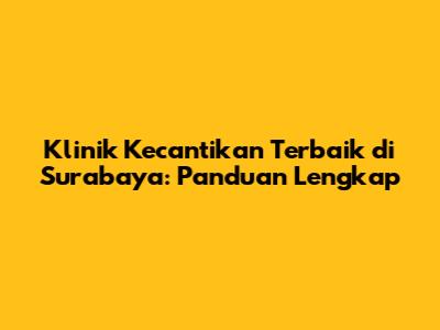 Klinik Kecantikan Terbaik Di Surabaya: Panduan Lengkap