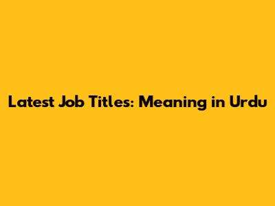 Latest Job Titles: Meaning In Urdu