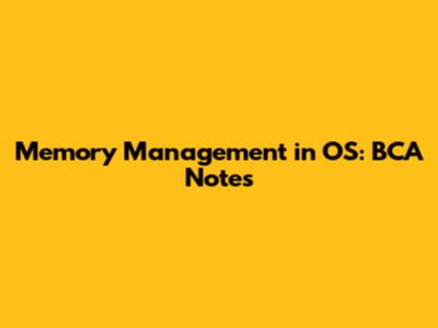 Memory Management In OS: BCA Notes