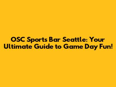 OSC Sports Bar Seattle: Your Guide To Game Day Fun!