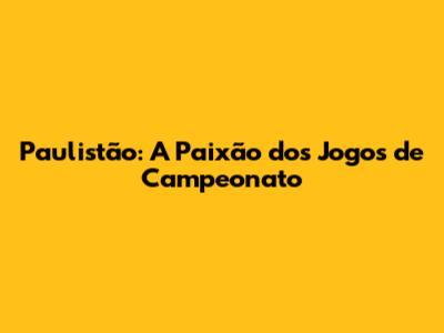 Paulistão: A Paixão Dos Jogos De Campeonato