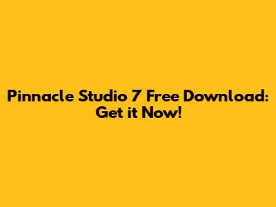 Pinnacle Studio 7 Free Download: Get It Now!