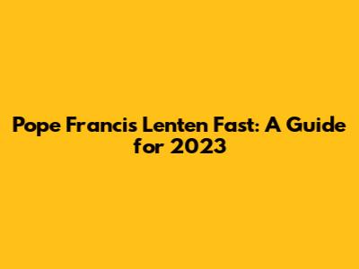 Pope Francis' Lenten Fast: A Guide For 2023