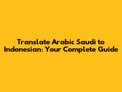 Translate Arabic Saudi To Indonesian: Your Complete Guide